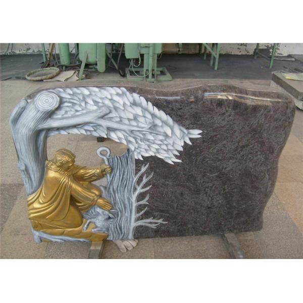 Gold Painting Cemetery Memorial Stones , Hand Carved Headstones With Various Styles Images |